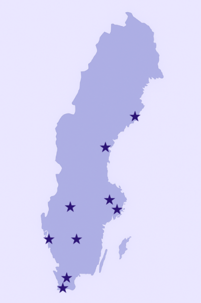 Stockholm, Uppsala, Karlstad, Göteborg, Jönköping, Lund, Malmö, Sundsvall och Umeå.