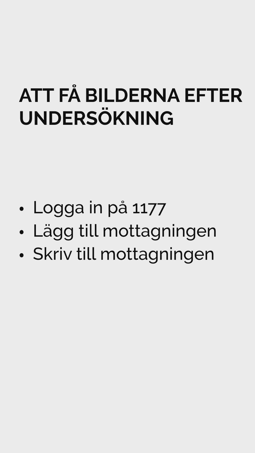 Om du inte lyckas få dina bilder via 1177 är det oftast bäst att börja med att ringa mottagningen där undersökningen gjordes. Om du ändå stöter på problem eller är osäker på hur du ska gå tillväga, är du varmt välkommen att höra av dig till oss – vi hjälper dig gärna.